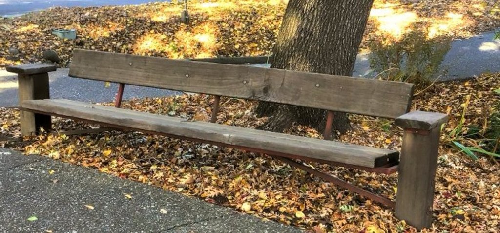 Village Homes Benches 1993-2023 The original mailboxes in Village Homes were individual, unlocked “boxes” with rounded tops, and sets of them were installed on horizontal beams supported by two 6″ x 6″ posts set about eight feet apart. The Post Office installed new, centralized key-operated boxes which left the old mailboxes and supports unused. In May 1993, a few years after the old mailboxes in our common area had been vacated, Reed removed the cross beams, shortened the support posts, and built a steel frame sized to fit between the posts and designed to support a seat and back, and attached armrests to the tops of the cut-off posts. The mailbox posts became the legs and armrests of a bench. On more than one late-night occasion someone drove a car into Parque Chico and spun donuts in the grass. The solution was to block the north access with large boulders and an eight-foot bench similar to the original bench. Later, a bench was added in the area in memory of Molly Alden. The benches continued to propagate. There are now fourteen Village Homes benches of essentially the same design and a 15th under consideration. The most recent installation was in October 2023. Only the original bench made use of the mailbox posts, although the old posts remain in several locations in the village, some of them cut to grade level but can still be seen.